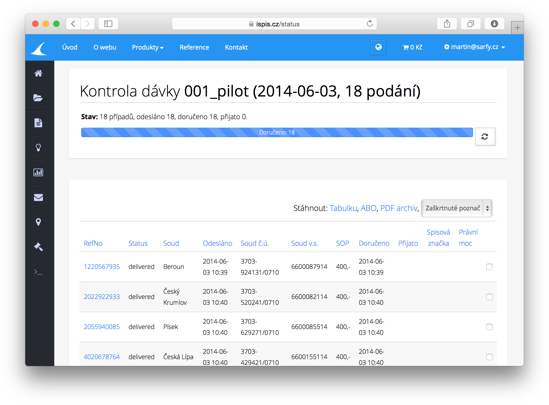 5. Dále jsou monitorovány e-mailové doručenky od soudů, z nichž se přebírá zejména spisová značka řízení.